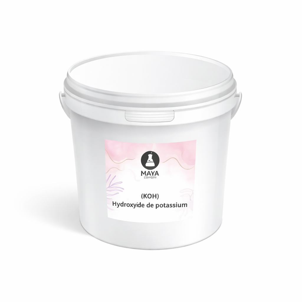 L’hydroxyde de potassium est un ingrédient essentiel dans le processus de saponification des savons liquides. Contrairement à la soude caustique (utilisée pour les savons solides), il permet d’obtenir des savons à texture liquide ou pâteuse. Il réagit avec les huiles et les corps gras pour produire du savon ainsi que de la glycérine.