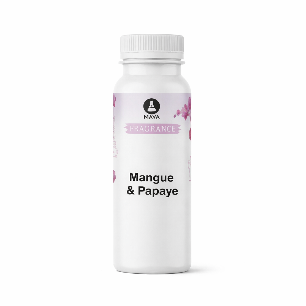La fragrance Mangue & Papaye est une combinaison exotique et rafraîchissante qui marie les arômes sucrés et juteux de la mangue avec la douceur tropicale et la saveur acidulée de la papaye. Cette senteur évoque des images de paradis tropical, avec ses fruits exotiques et son ambiance ensoleillée.