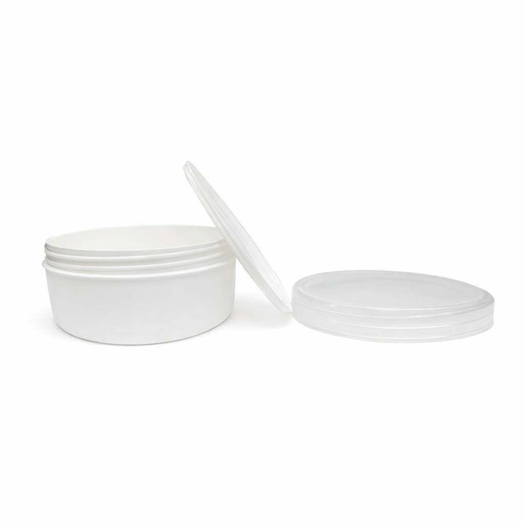 Ce joli pot PET en blanc avec couvercle transparent  est un indispensable pour conditionner et conserver à la fois vos préparations cosmétiques (baumes,masque cheveux , crèmes, soins, …) et vos ingrédients (cires, poudres colorantes, argiles, …). Sa grande contenance de 200ml est idéale pour stocker des préparations pour le corps ou les cheveux par exemple.